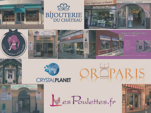 Tiendas de lujo, comerciantes, especialistas en minerales, joyeros (joyería tradicional “otras tiendas”, bisutería) les proponen nuestras joyas, creaciones y colecciones en Francia y Europa (Alemania, Austria, España, Países Bajos, Finlandia, Suiza…).
